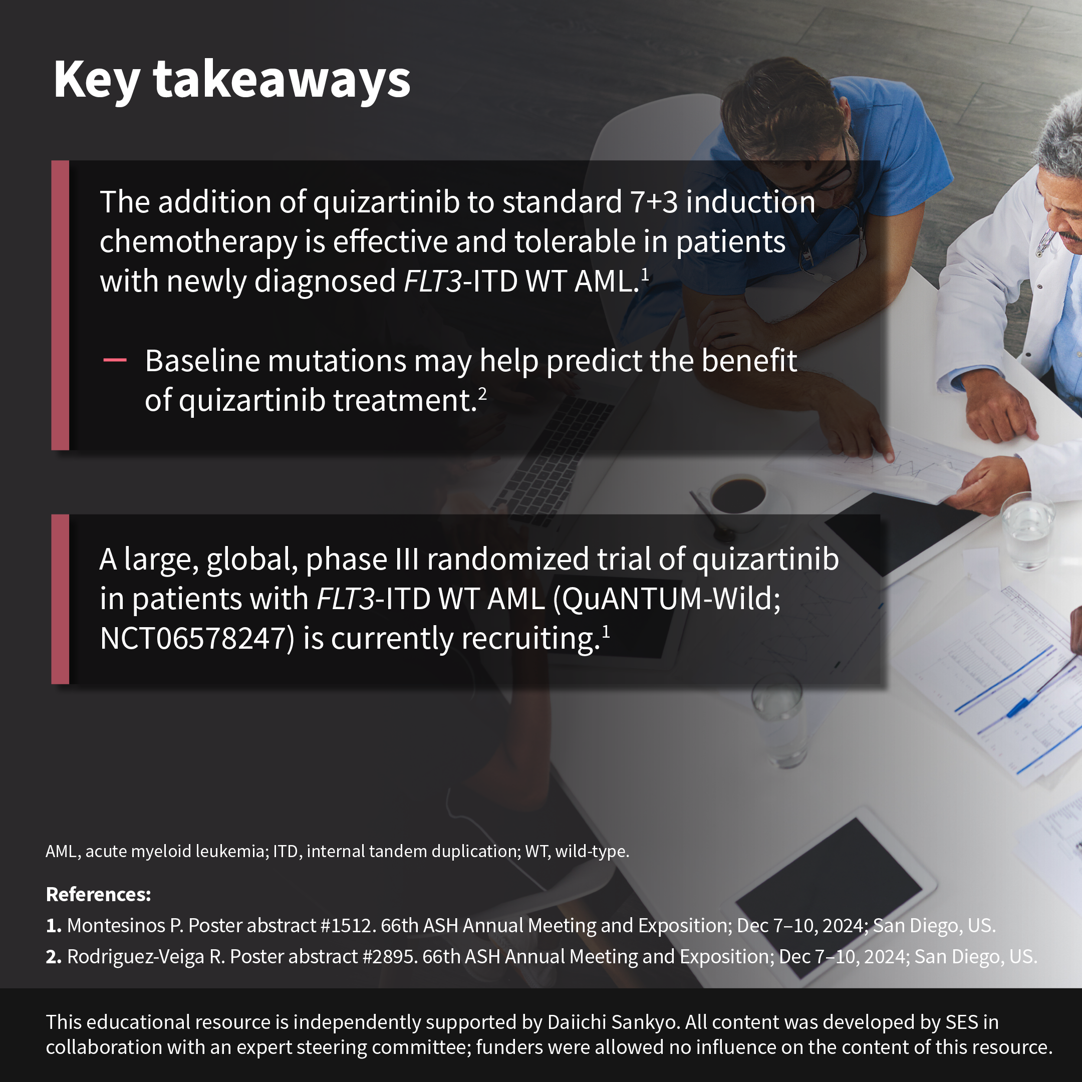 The AML Hub is an independent medical education platform, sponsored by Astellas, Daiichi Sankyo, Johnson & Johnson, Kura Oncology and Syndax, and has been supported through educational grants from Bristol Myers Squibb and the Hippocrate Conference Institute, an association of the Servier Group. The funders are allowed no direct influence on our content. The levels of sponsorship listed are reflective of the amount of funding given. View funders.