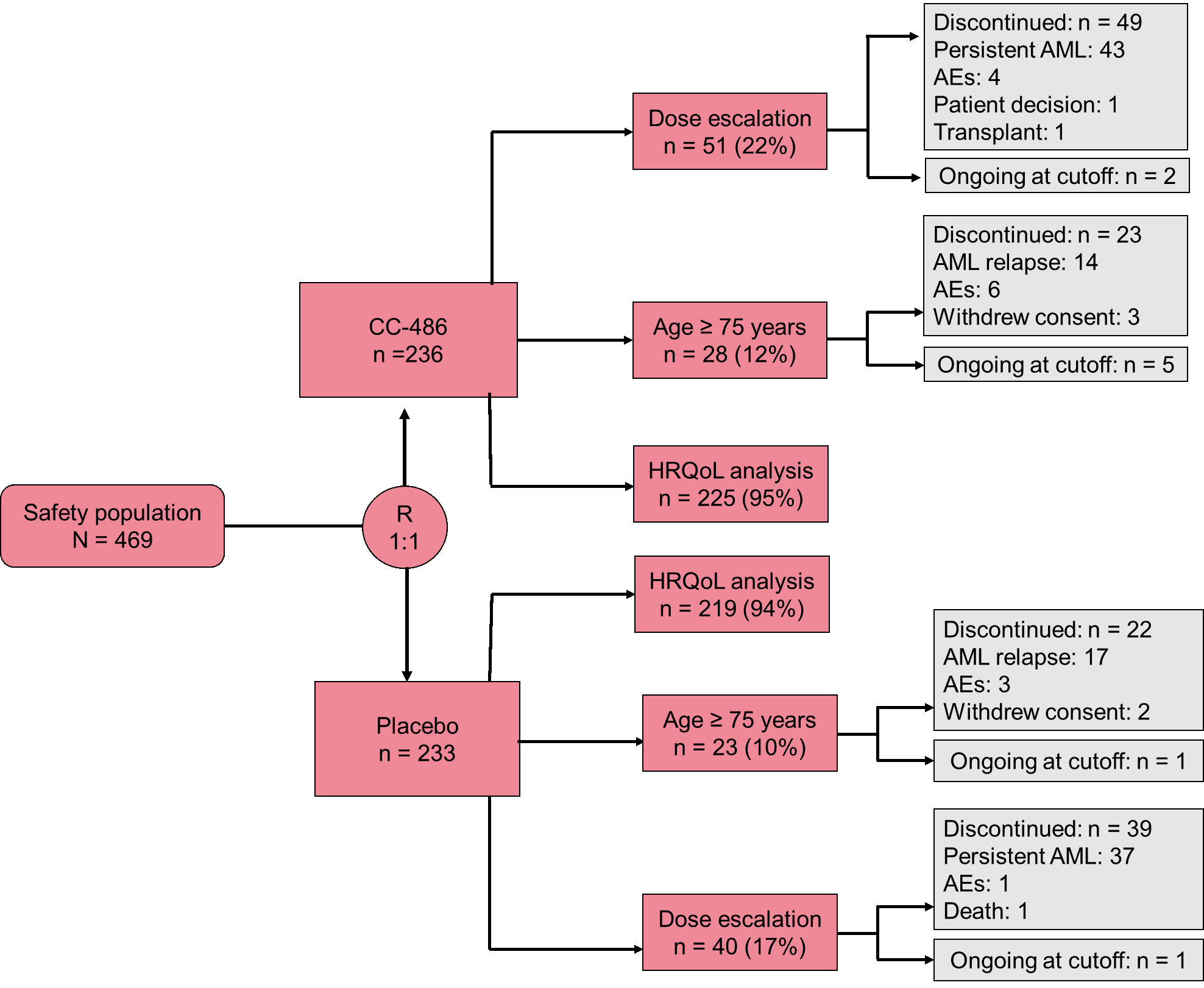 Figure 1. Subgroup analyses of the QUAZAR AML-001 study. AE, adverse event; AML, acute myeloid leukemia; HRQoL, health-related quality of life