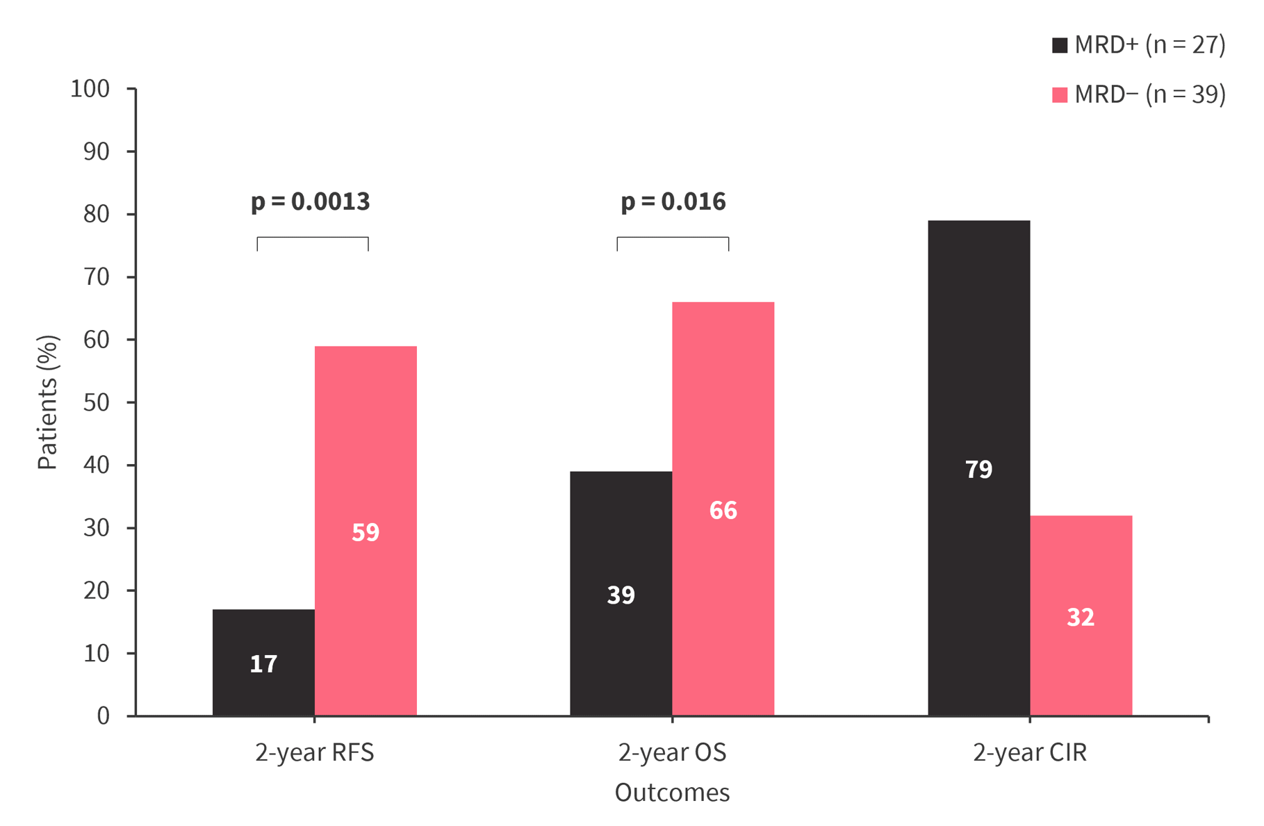 Figure 3. 2-year RFS, OS, and CIR rate by KMT2Ar MRD status*